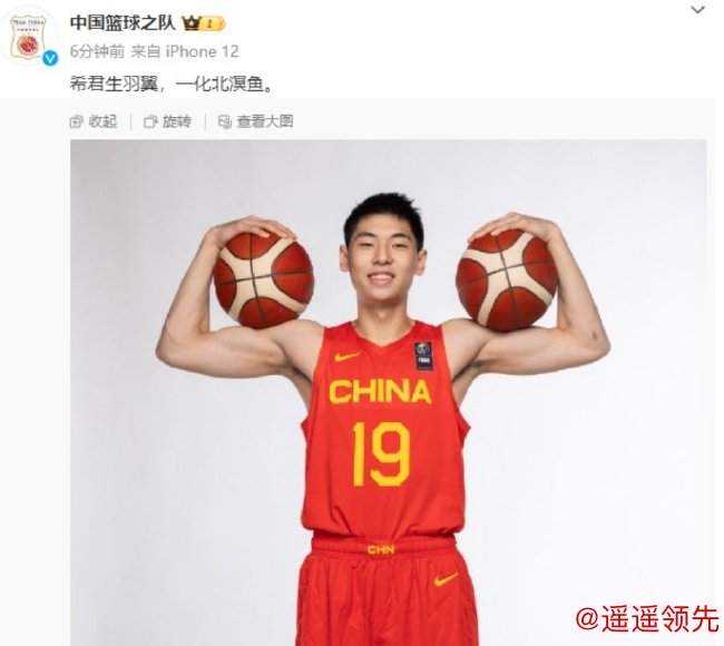 中国篮球官方写道:“希君生羽翼,一化北溟鱼。”